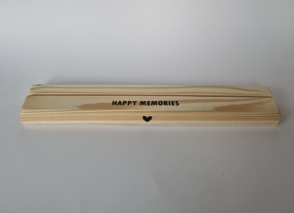 Het plankje is 30 cm lang en is voorzien van de tekst Happy Memories.