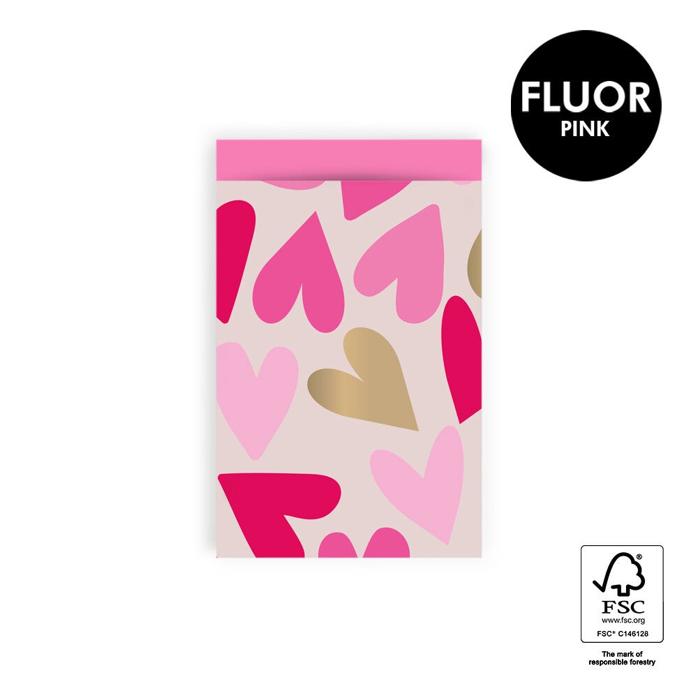 Cadeau Zakje | 12 x 19 | Big Hearts | Fluor Pink