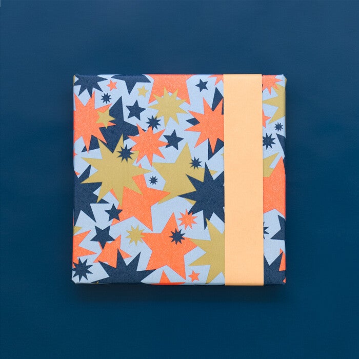 Cadeaupapier | 30 cm | Big Stars | Blue Fluor Orange