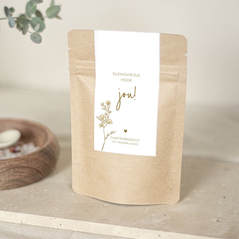 Een zakje badzout met rozenblaadjes voor een heerlijk relax momentje.