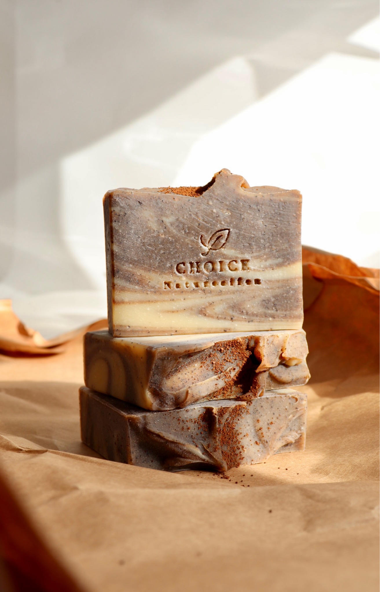 Handgemaakte natuurzeep met kokosmelk en koffie.