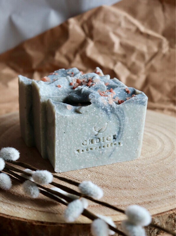 Handgemaakte natuurzeep met Himalaya zout en Australische tea tree olie.