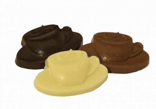 Dit zakje bevat 12 heerlijke chocolaatjes (melk, puur, wit) in de vorm van een theekopje.