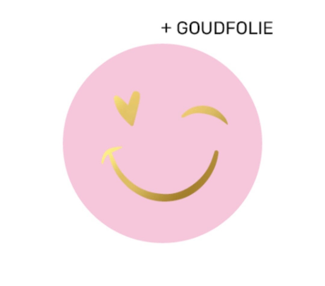 Mooie grote sticker in een licht roze kleur en een opdruk in goudfolie voor een prachtig effect.