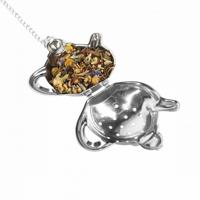 Handig thee-ei in de vorm van een theepot. Geschikt om losse thee in te doen voor in een pot of kop thee. Te openen en sluiten door een kliksysteem. Door het kettinkje dat eraan zit is het thee-ei er makkelijk in en uit te halen.