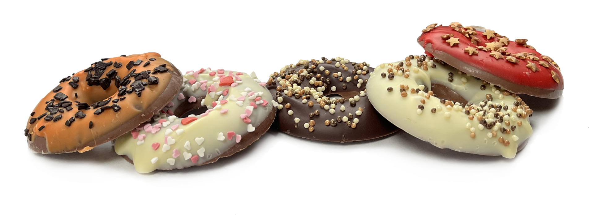 Heerlijke melkchocolade in de vorm van een donut, met karamel smaak en topping. Verpakt in een luxe vensterdoos.