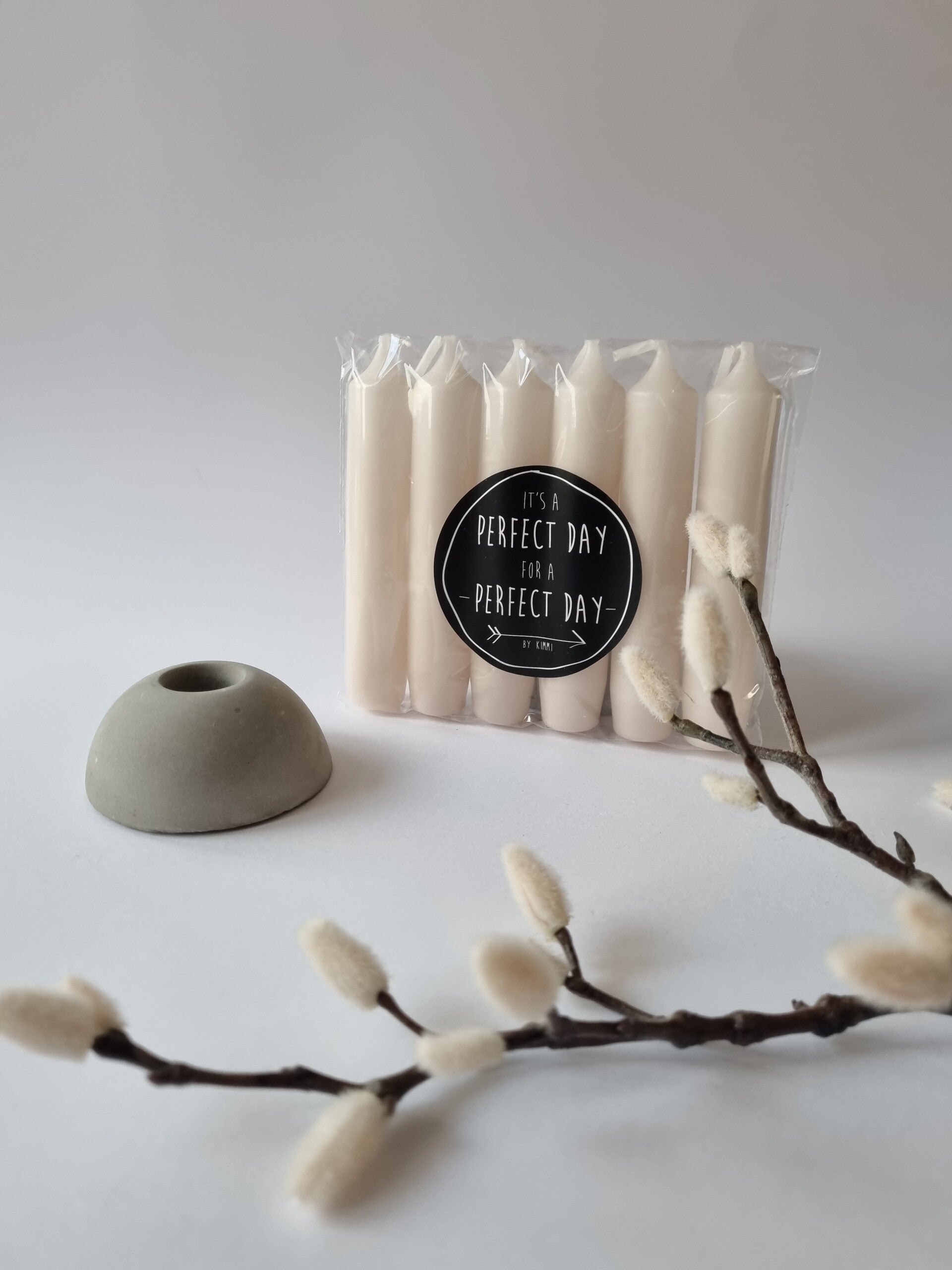 Deze mooie set dinerkaarsjes zijn niet alleen gezellig om op te branden, ze zijn ook erg leuk om kado te geven! Ze zitten in een mooi zakje met 6 stuks verpakt en er zit een grote sticker op (It’s a perfect day for a perfect day).