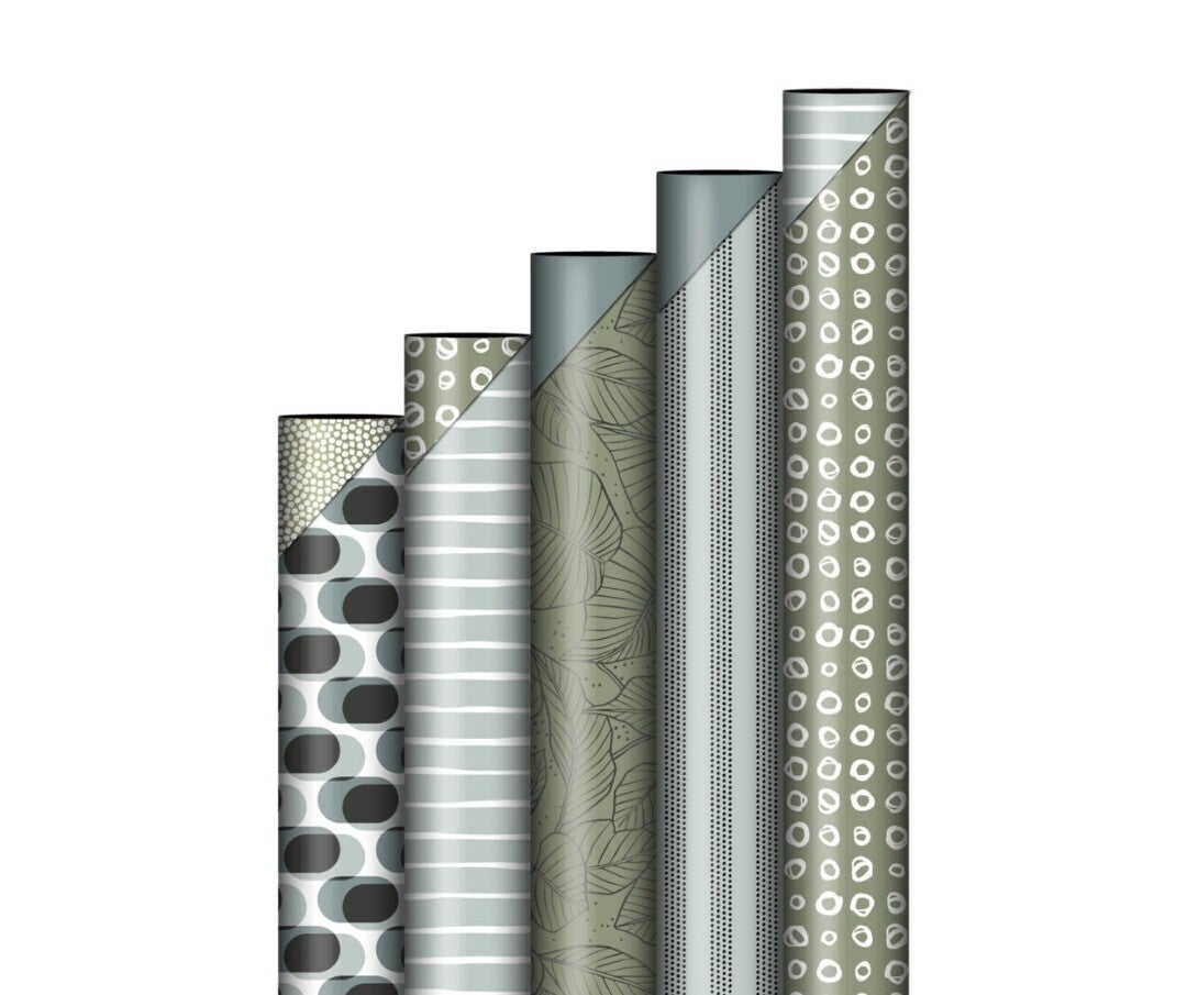 Cadeaupapier Set met 5 dubbelzijdige rollen die perfect bij elkaar passen.
