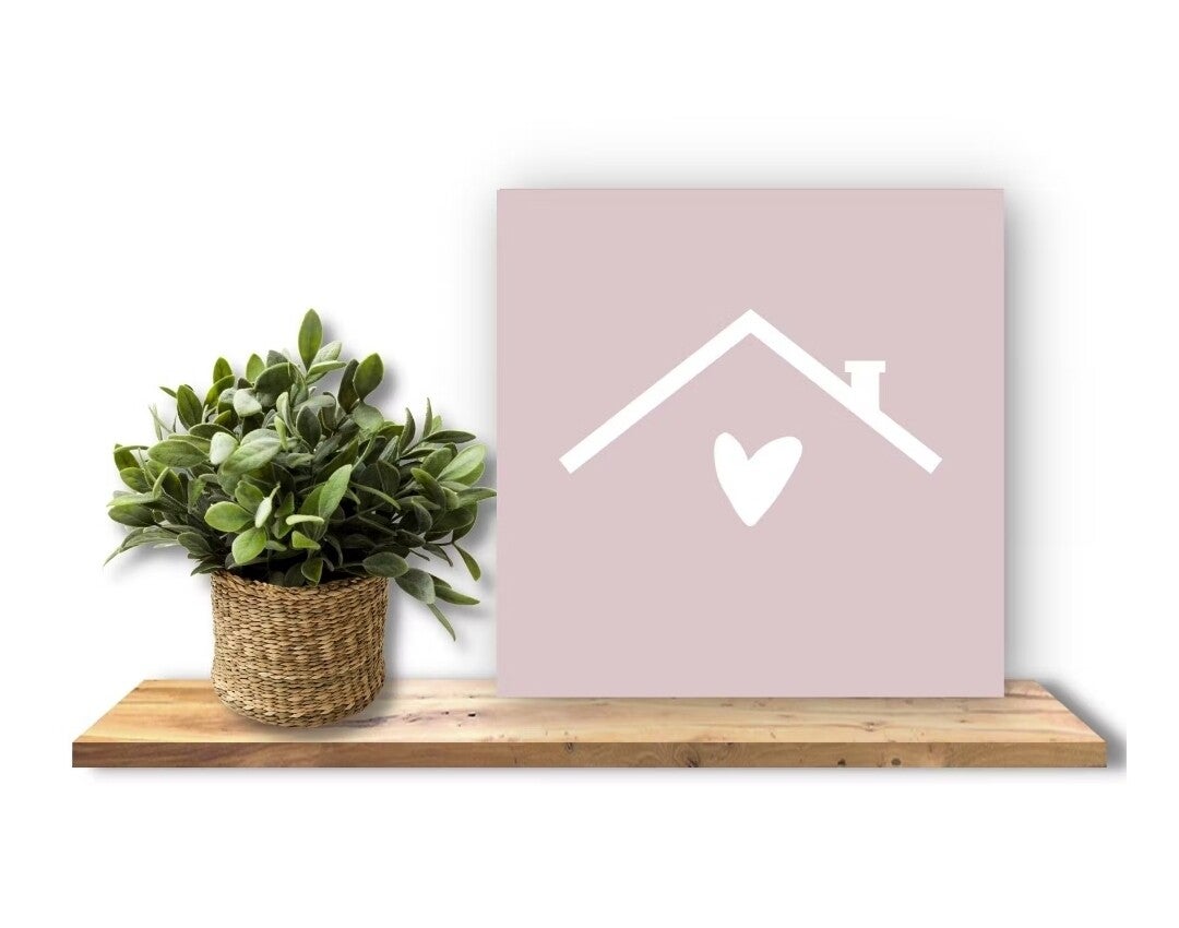 Een forex muurvierkant is een mooie zachte Kleur met een afbeelding van een dakje en een ♡.