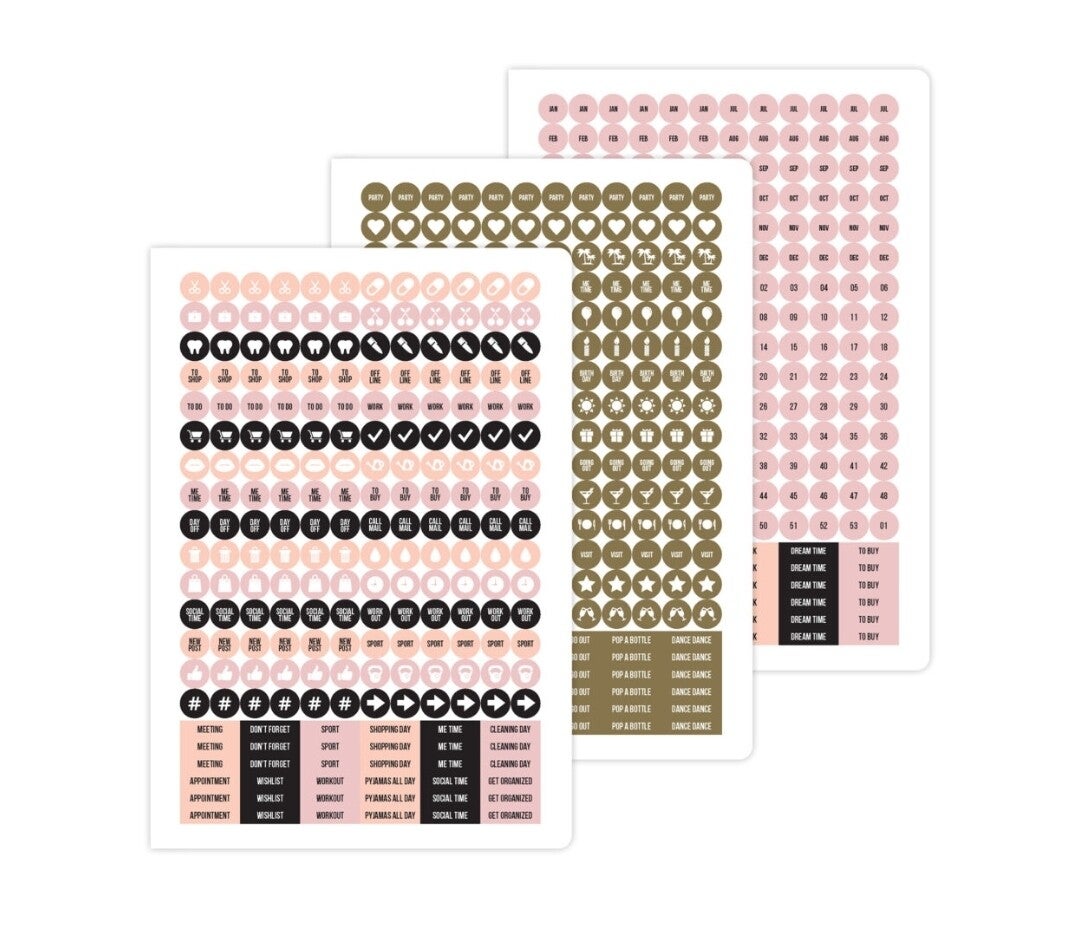 Je kunt op elk moment van het jaar beginnen, aangezien de planner vrij invulbaar is en we al 3 pagina’s met plannerstickers (met veel roze en goud!) speciaal voor jou hebben toegevoegd! Vind alle maanden, weken, weeknummers en nog veel meer stickers en begin meteen met plannen!