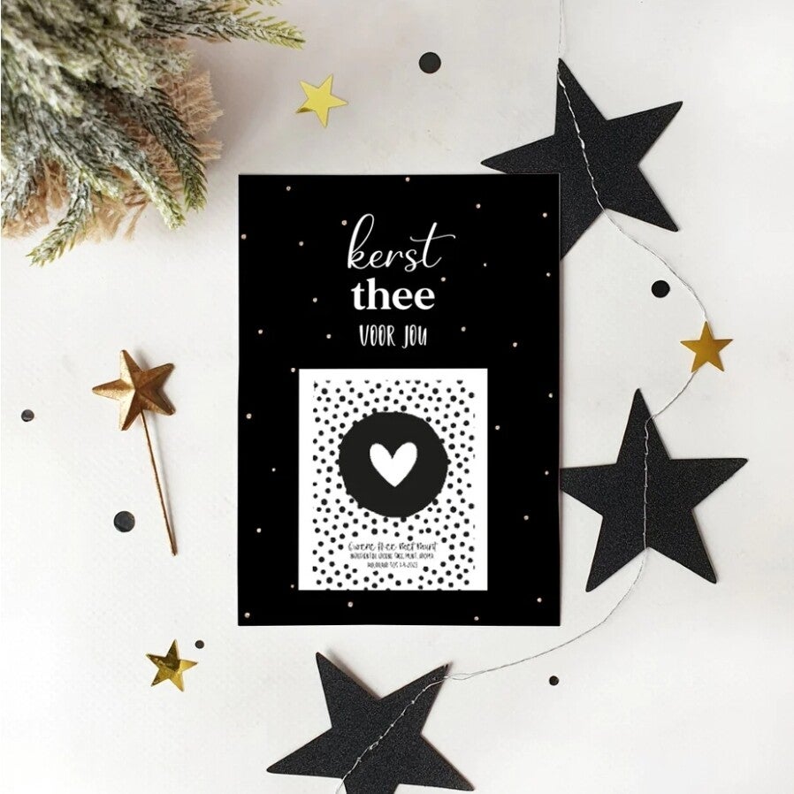 De voorzijde heeft mooi design met tekst en een theezakje erop. Aan de achterzijde is er ruimte voor een persoonlijke tekst en de adresgegevens.