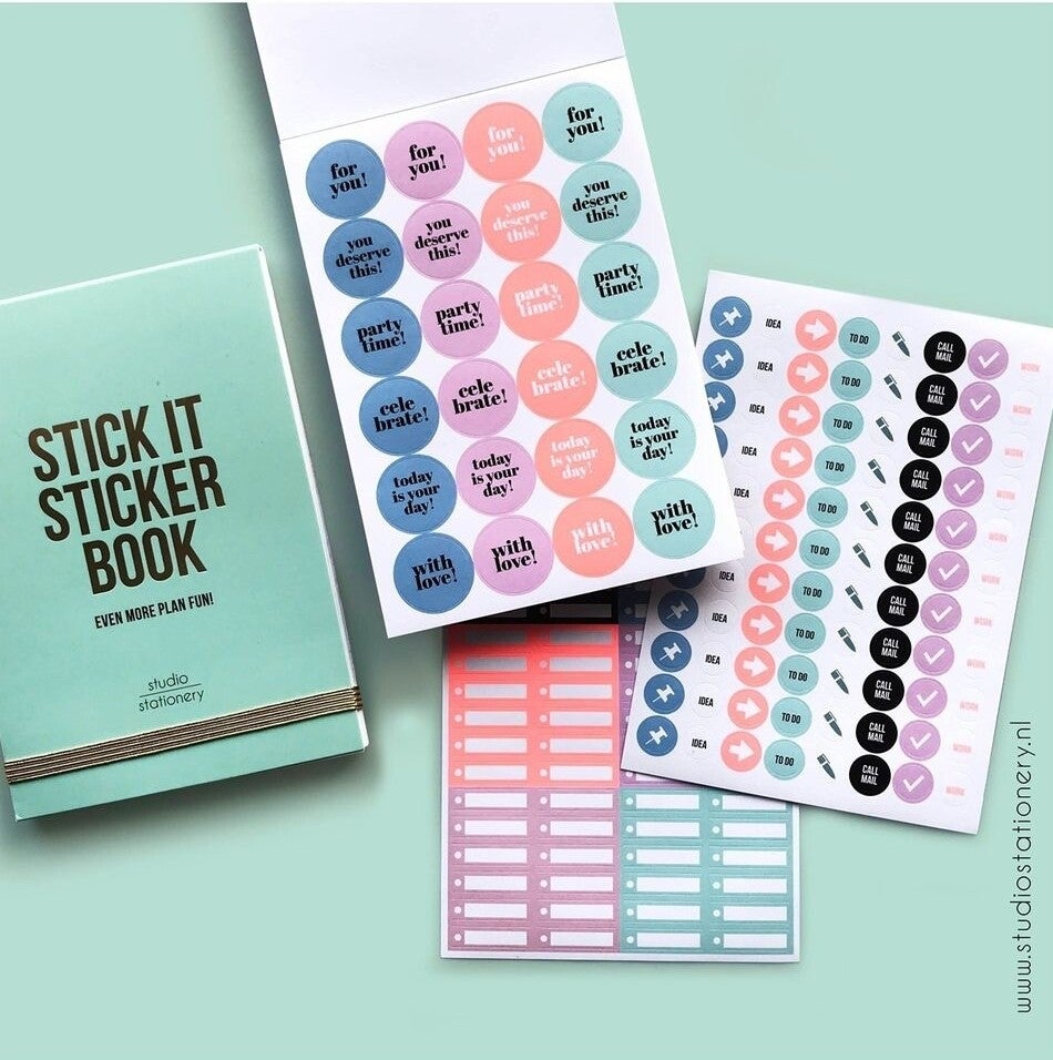 Plannen is nog nooit zo leuk geweest als met dit stick it stickerboek met ruim 2250 kleurrijke stickers. To do’s, meetings, verjaardagen, afspraken, lunches, wat te eten, wat voor weer het wordt en hoe je humeur is. Maar ook alfabetstickers, cijfers, quotes, goudfoliestickers en veeeel meer. Voor alles is een sticker! Gebruik hem samen met een planner voor nog meer planplezier!