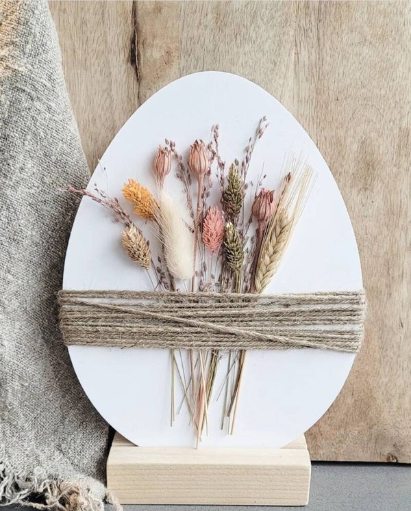 Een forex paasei met droogbloemen.