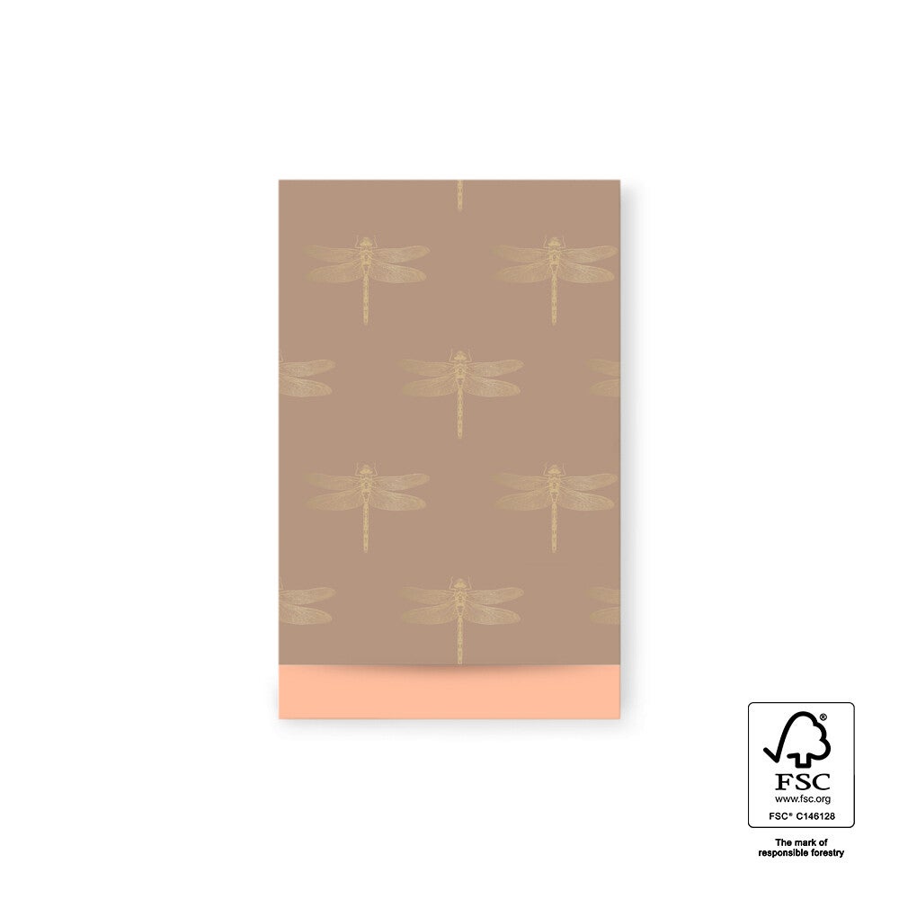 Cadeau Zakje | 12 x 19 | Dragonfly | Gold Foil | Mocha Peach